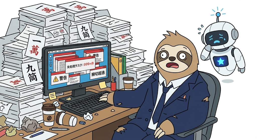 「おい、昔の俺!お前の敗因は『運』じゃない。牌効率という名の『事務処理』をサボり、毎回ゼロから無駄な思考を繰り返しているその『仕事のできなさ』だだに!」